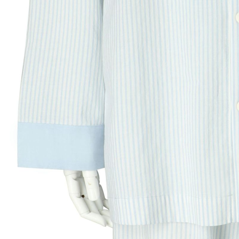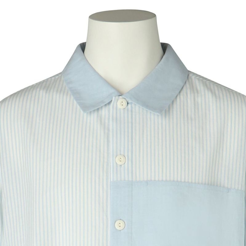 新素材のさらっとしたコットン100%のシャンブレーワッシャー地。爽やかなストライプに組み合わせたシャンブレー無地がポイントです。