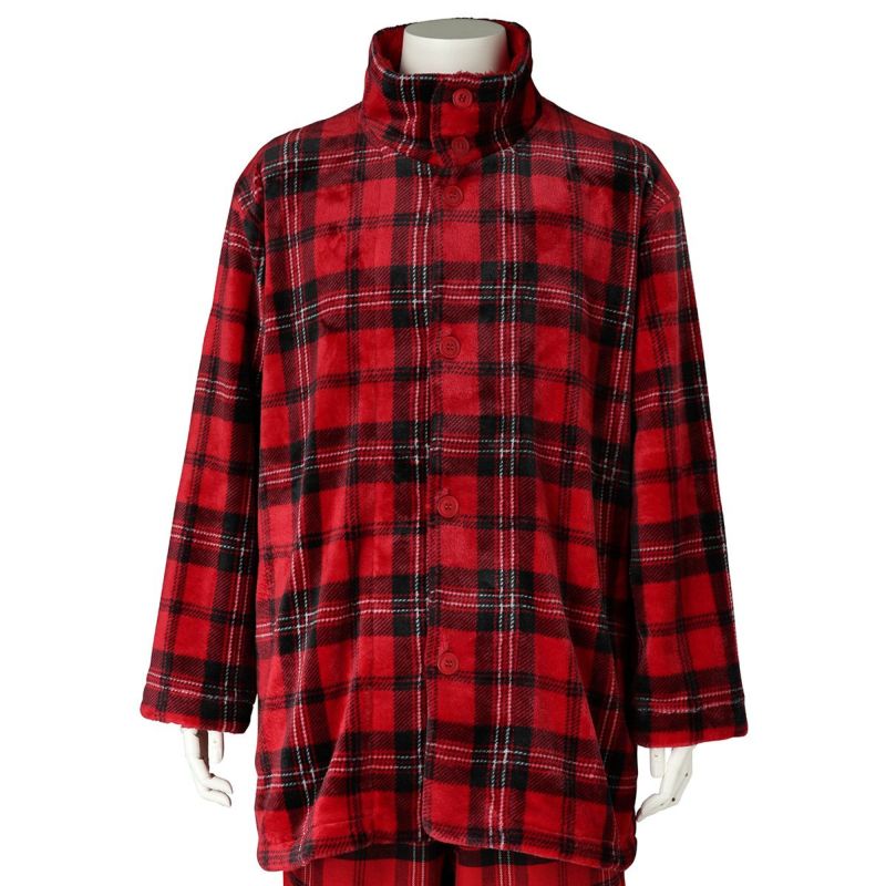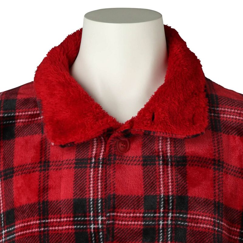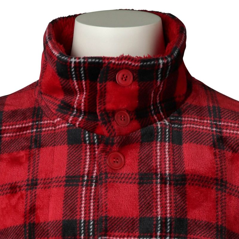 メンズ長袖ガウンは、柄を活かしたシンプルなデザイン。襟は釦を外しても、留めてスタンドカラーにもできる2WAY仕様。