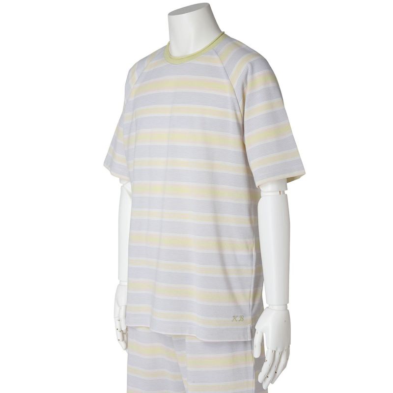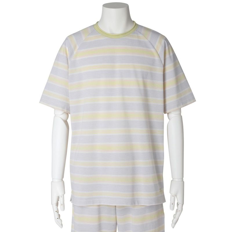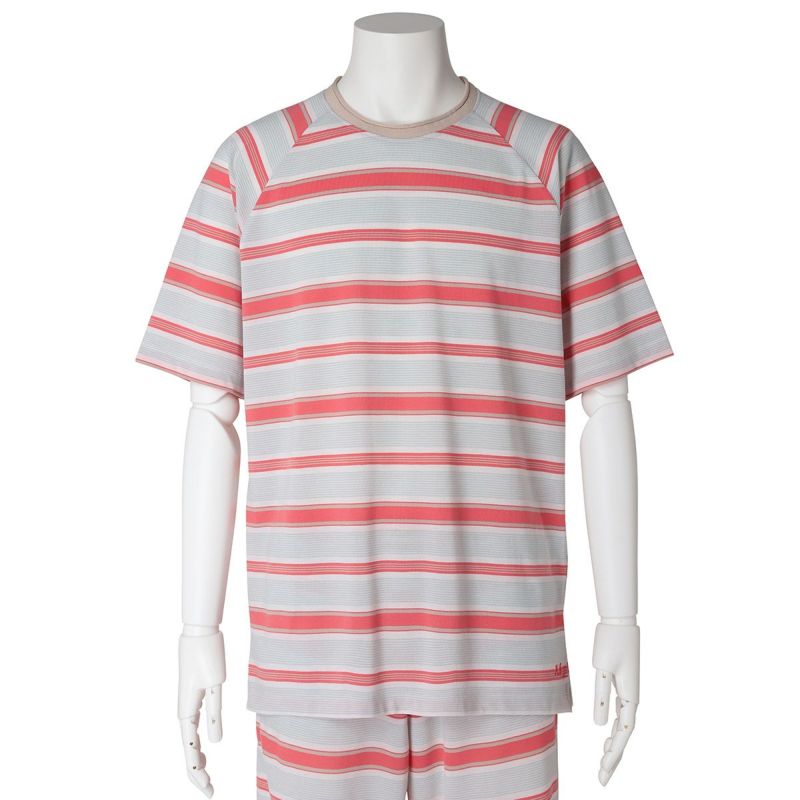 メンズの半袖トップスは、トレンドのゆったりとしたラグランスリーブで身幅も広くリラクシーな着用感。カジュアルすぎない首元のロールがポイント。クロスステッチ風のロゴ刺繍を施しさりげないアクセントに。同シリーズのボトムス(MRBP563)と合わせてセットアップもおすすめです。