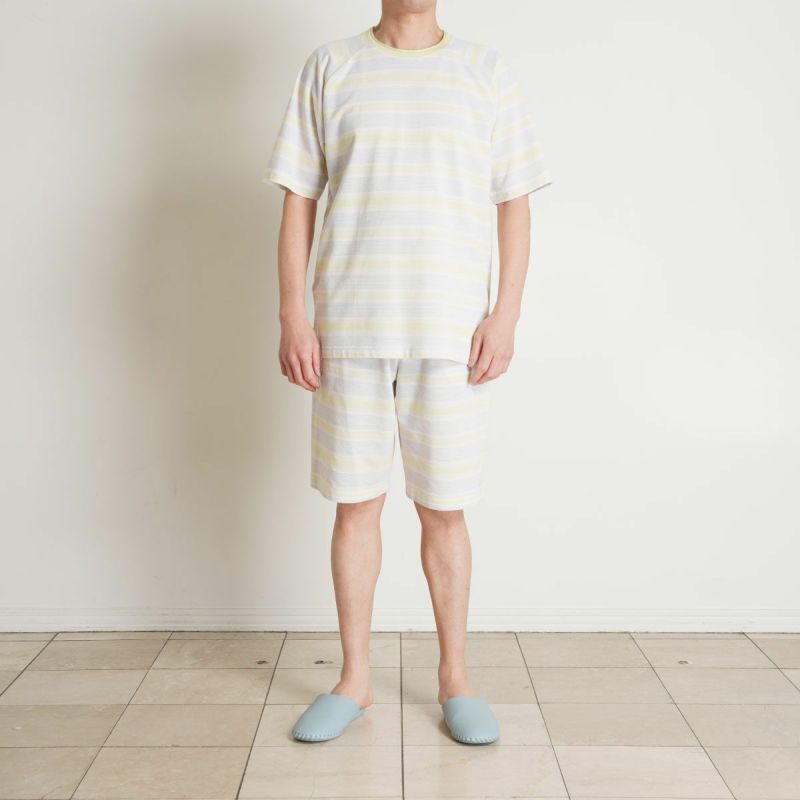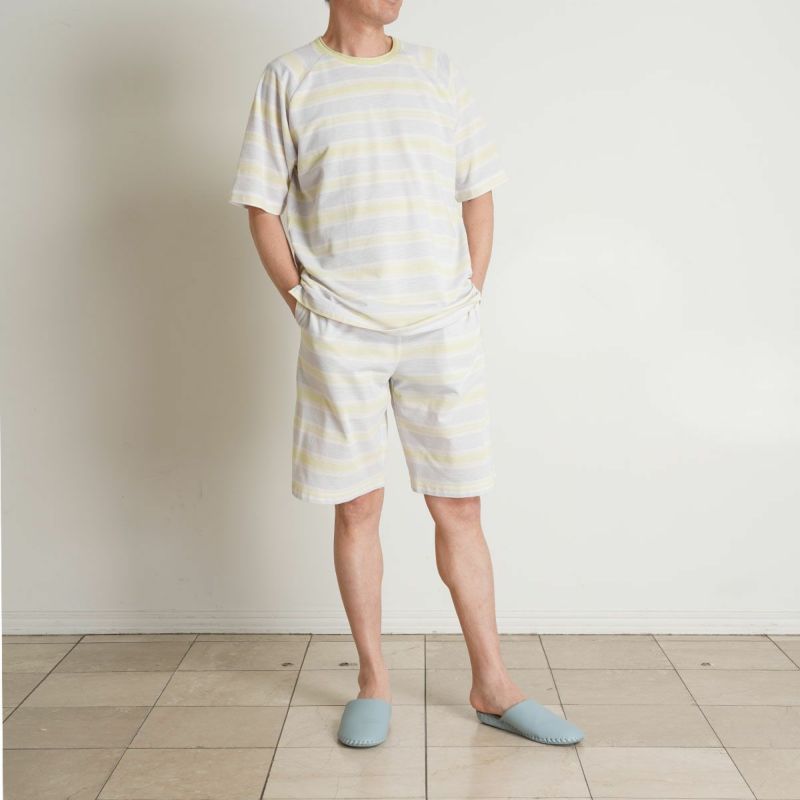 通気性がよく洗濯後の乾きも早い夏の定番素材、鹿の子シリーズ。型崩れしにくくシワになりにくい取り扱いのしやすさも人気の秘密。薄手で柔らかい風合いに仕上げました。おうち時間を楽しめる爽やかなマルチボーターの2色展開。