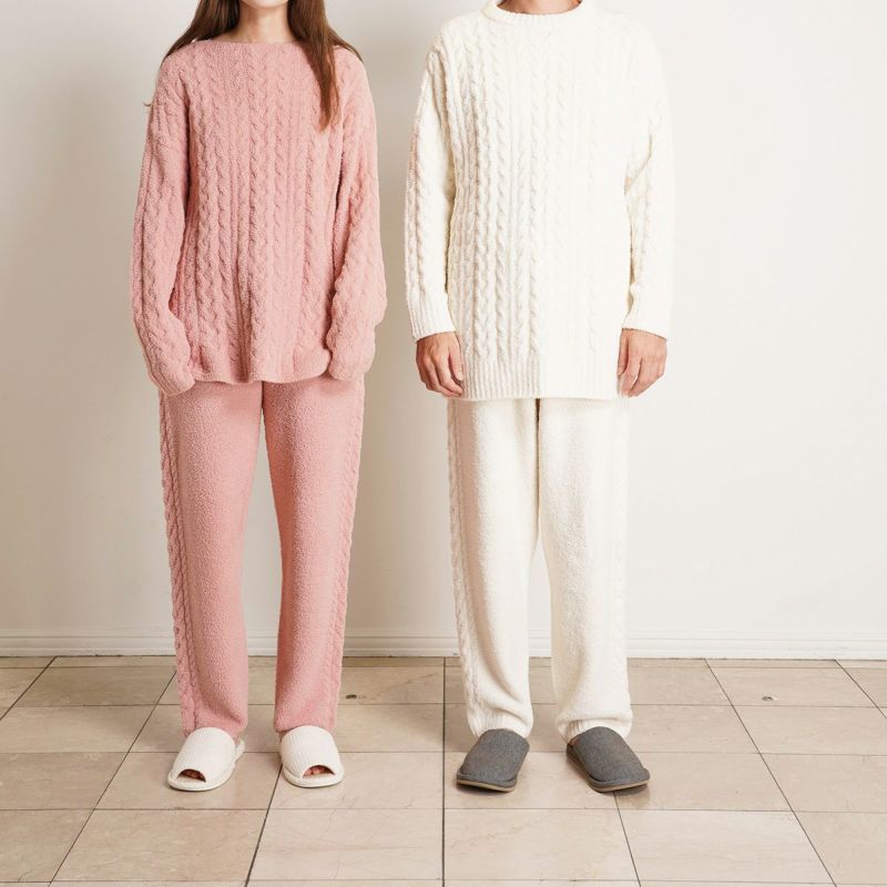 メンズ長袖トップスは、リブをアクセント使いしたデザイン。季節感のあるケーブル柄。体型や好みに合わせてレディースの方の着用も◎ペアギフトにもオススメ