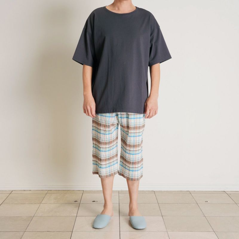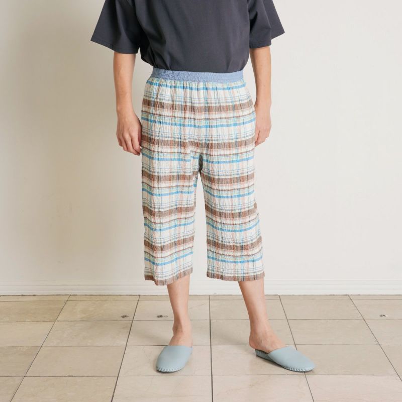 メンズの7分丈ボトムスは、膝下ぐらいのレングス。ステテコ風に着用でき、ウエストゴムで締め付け感がないのでリラックスタイムにぴったり!ルームウェアにはもちろんパジャマにもおすすめです。