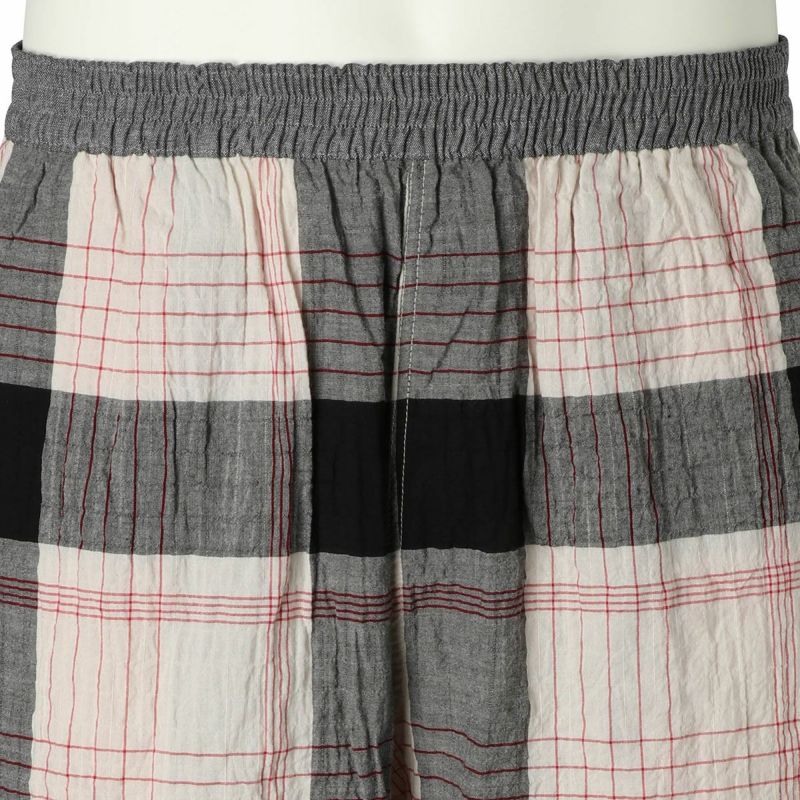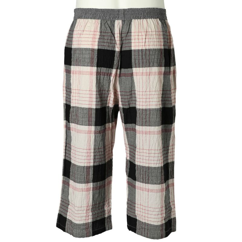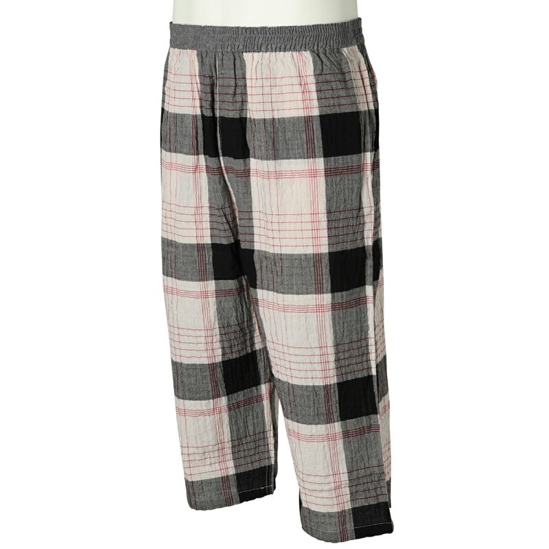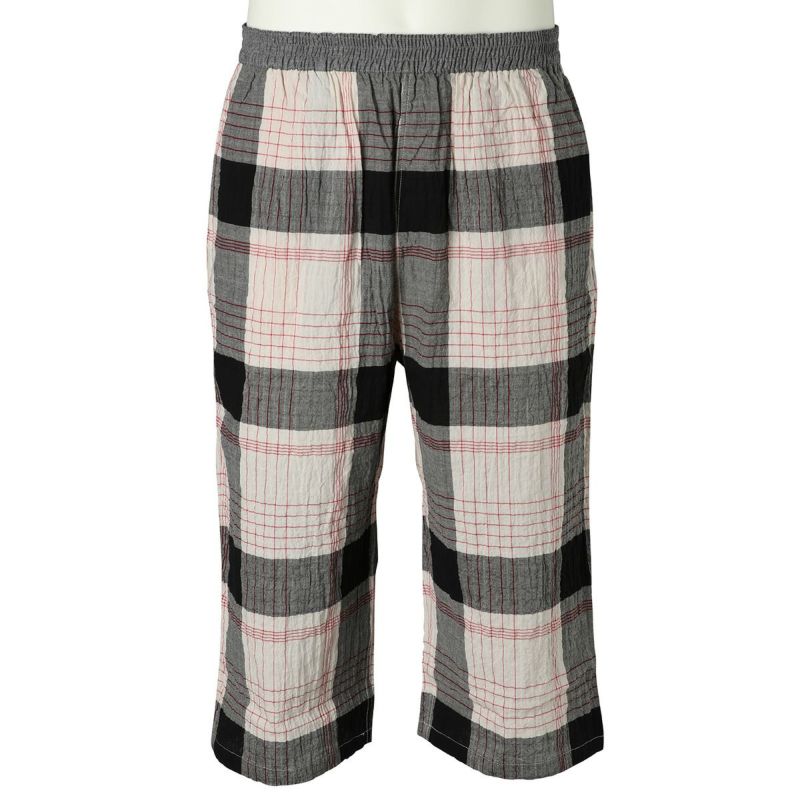 メンズ7分丈ボトムスは、足首をすっきり見せる丈感。ウエストは別布を切り替え使用。夏のお部屋着におすすめ。