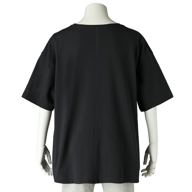メンズ5分袖トップスは、使いやすいシンプルなシルエット。背中の配色ステッチがポイントでレディースと同デザイン。オーバーサイズな着こなしがお好みなレディースの方にもおすすめ。