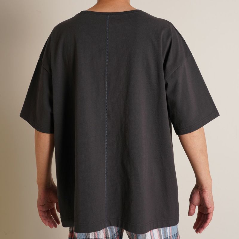 太番手の糸を使用した、中肉のコットン天竺で1枚でも透けにい。シルエットが気になりにくく、着回し力が高いシリーズ。