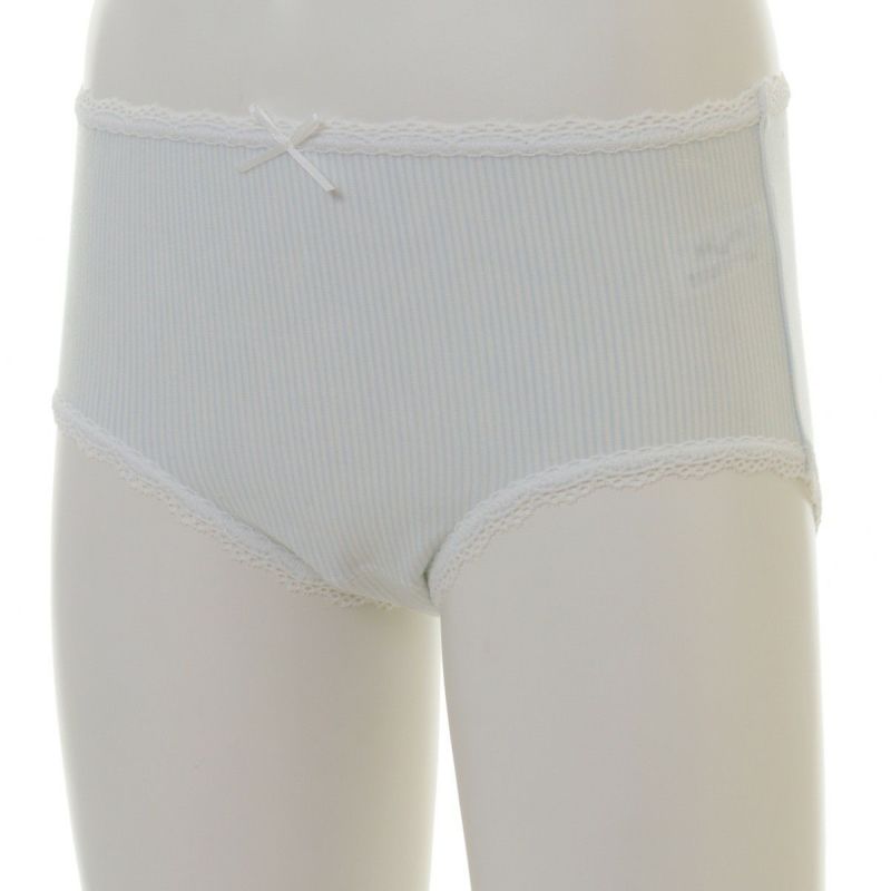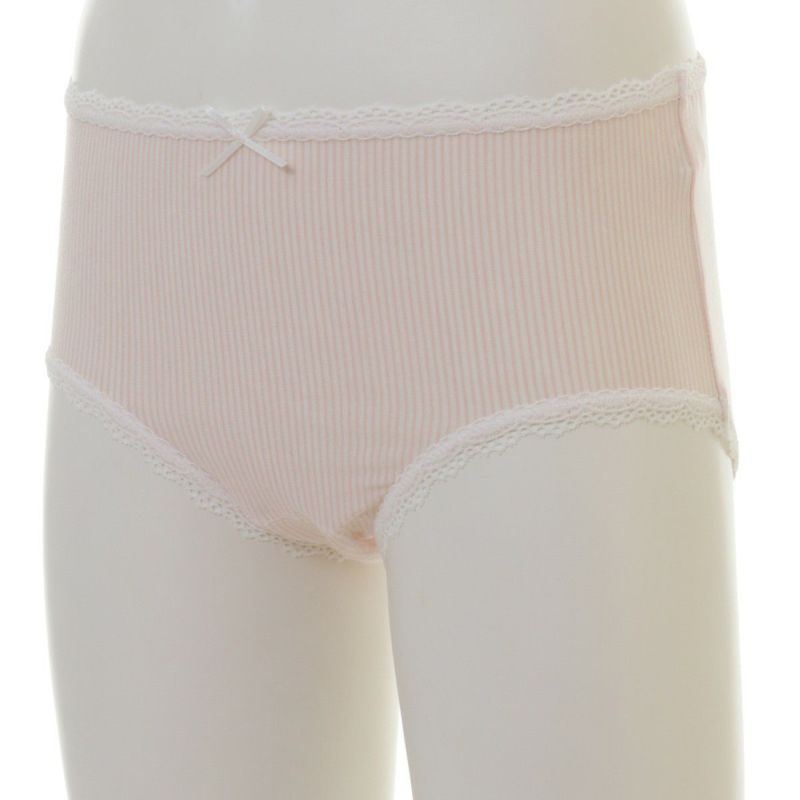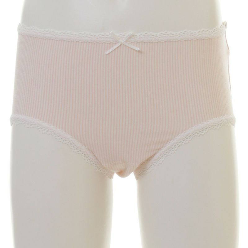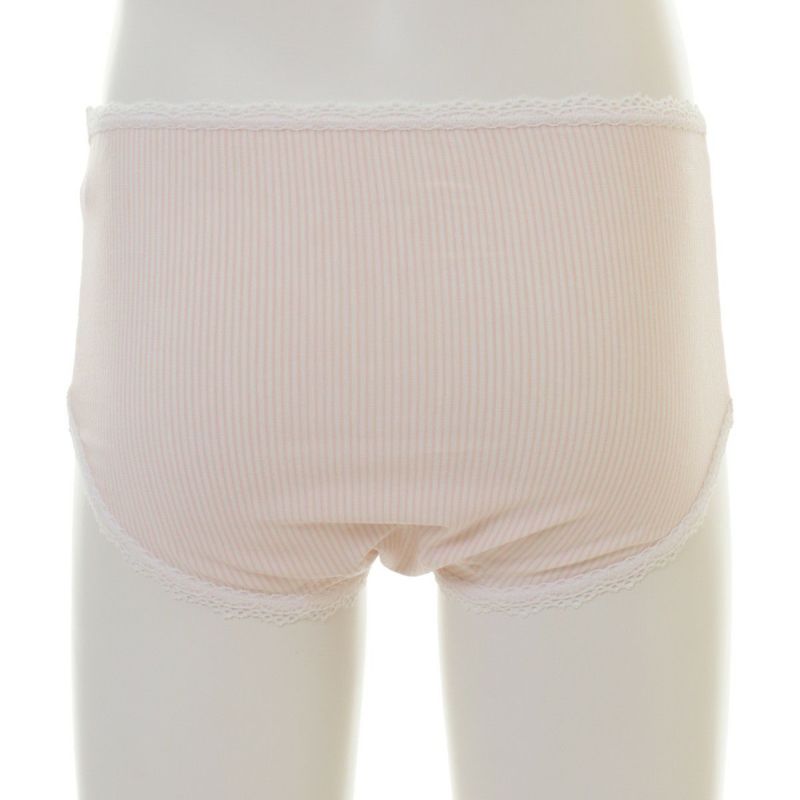 キッズ用ショーツはウエストと脚口に細レースを使用。ウエスト中心にプチリボン付き。キッズ用インナーにはお子様らしい白い細レースを使用しました。