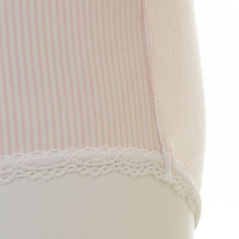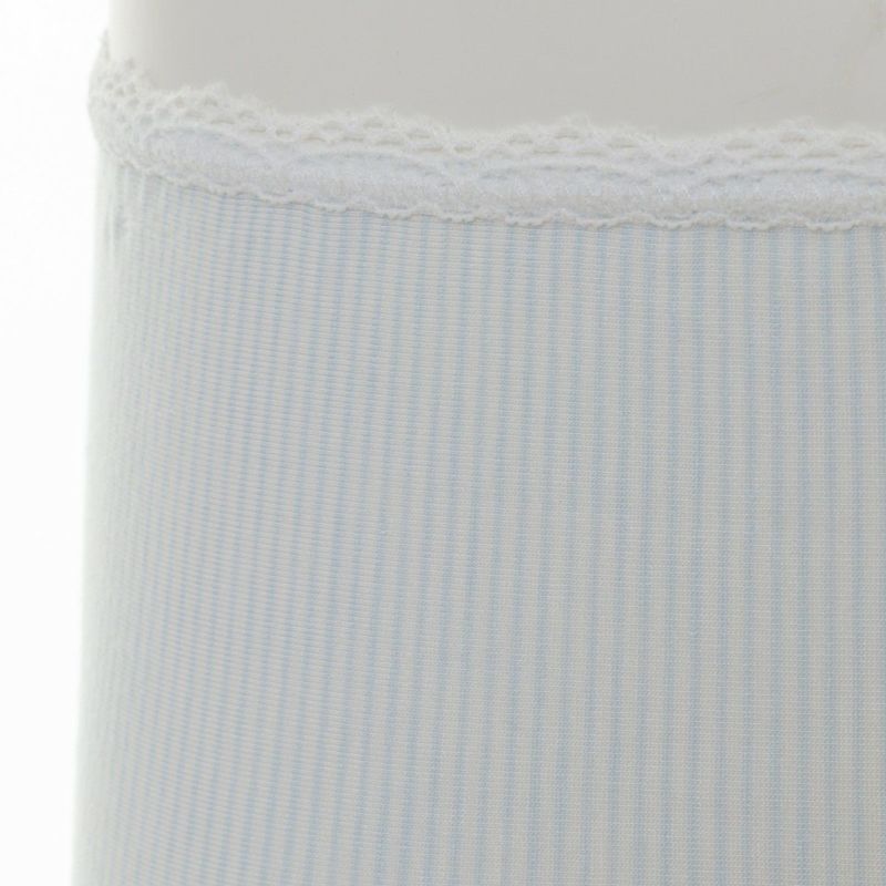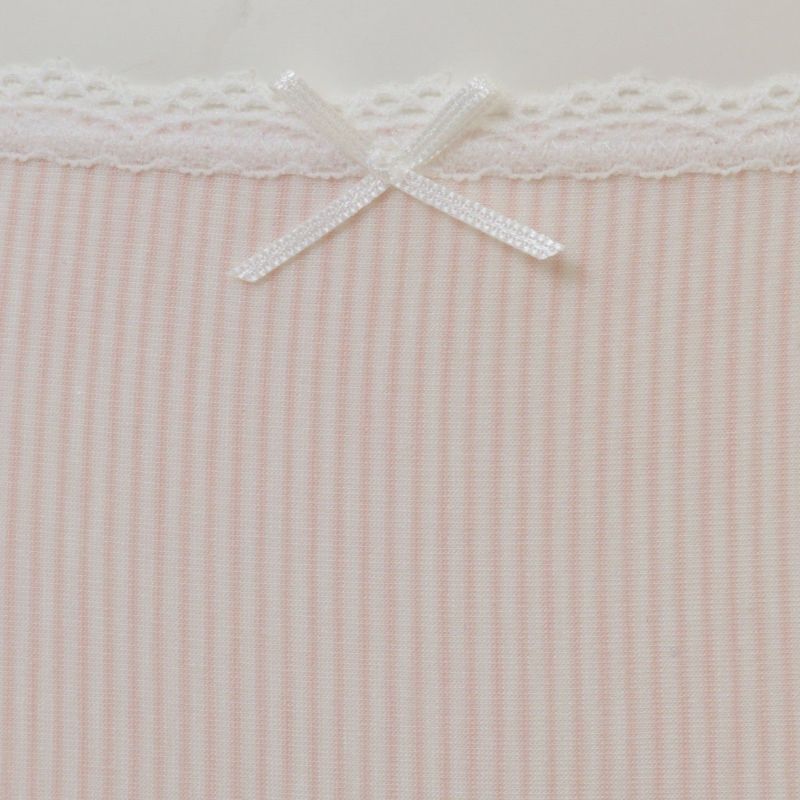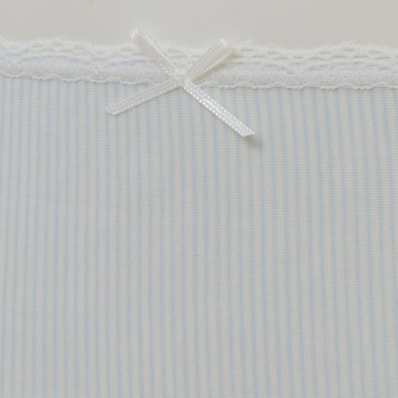 キッドブルー定番のアイコン、KBベンベルグベア天シリーズが6年ぶりにリニューアル。ブランドカラーの定番サックスにピンクが仲間入り。快適な素材はそのままに、カラーを少し落ち着かせ、ストライプピッチはやや狭く、レースも配色から同色にすることで、より大人っぽいデザインに生まれ変わりました。素材のベンベルグはコットンの産毛由来の再生繊維で肌にも環境にも優しく、吸放湿に優れています。短繊維の糸をつむぐことで肌触りもまるでコットンのようなさらりとした着心地です。