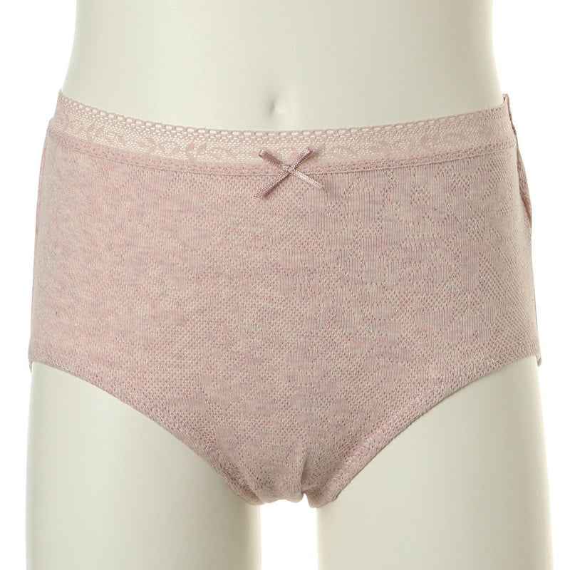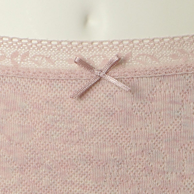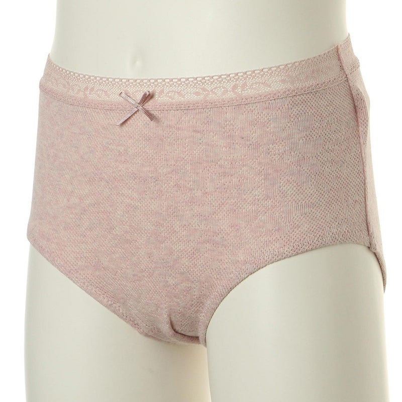 キッズ用ショーツはウエストに細レースを使用。足口はノンレースで、ウエスト中心にプチリボン付き。