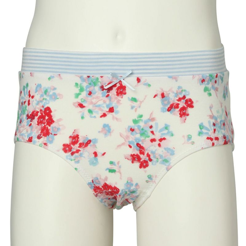 キッズ用ショーツは、肌に優しいノンレース仕様。ウエストにはボーダー生地を使用し、センターにプチリボンを配置。