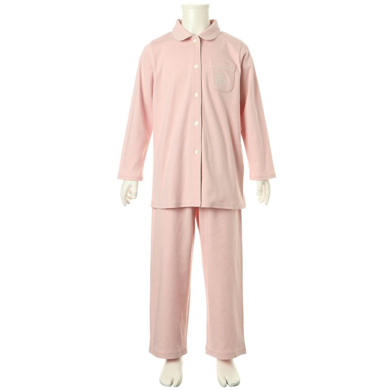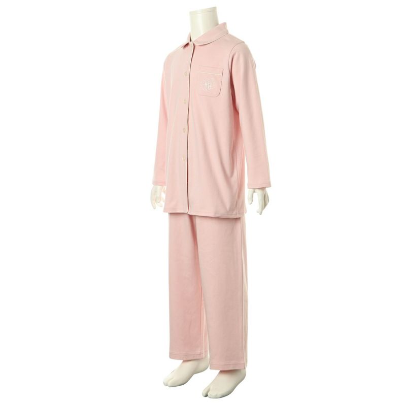 キッズ用長袖パジャマは、プレーンなシャツ型デザイン。ポケットにはロゴ刺繍入り。ファミリーでお揃いコーデも楽しめます。