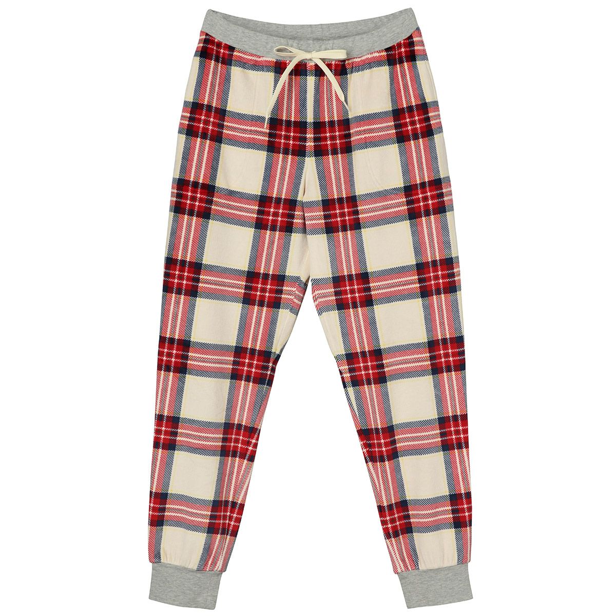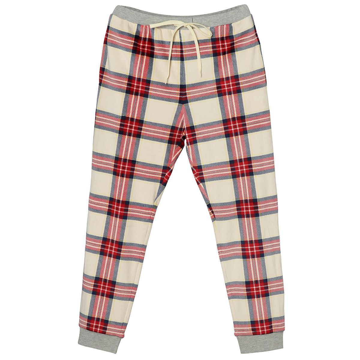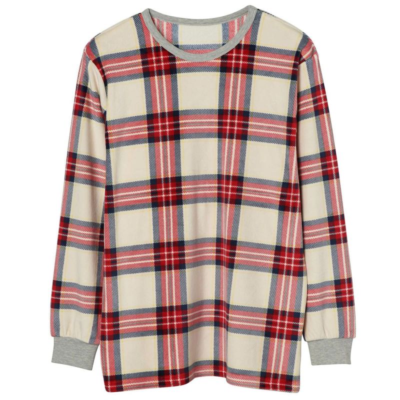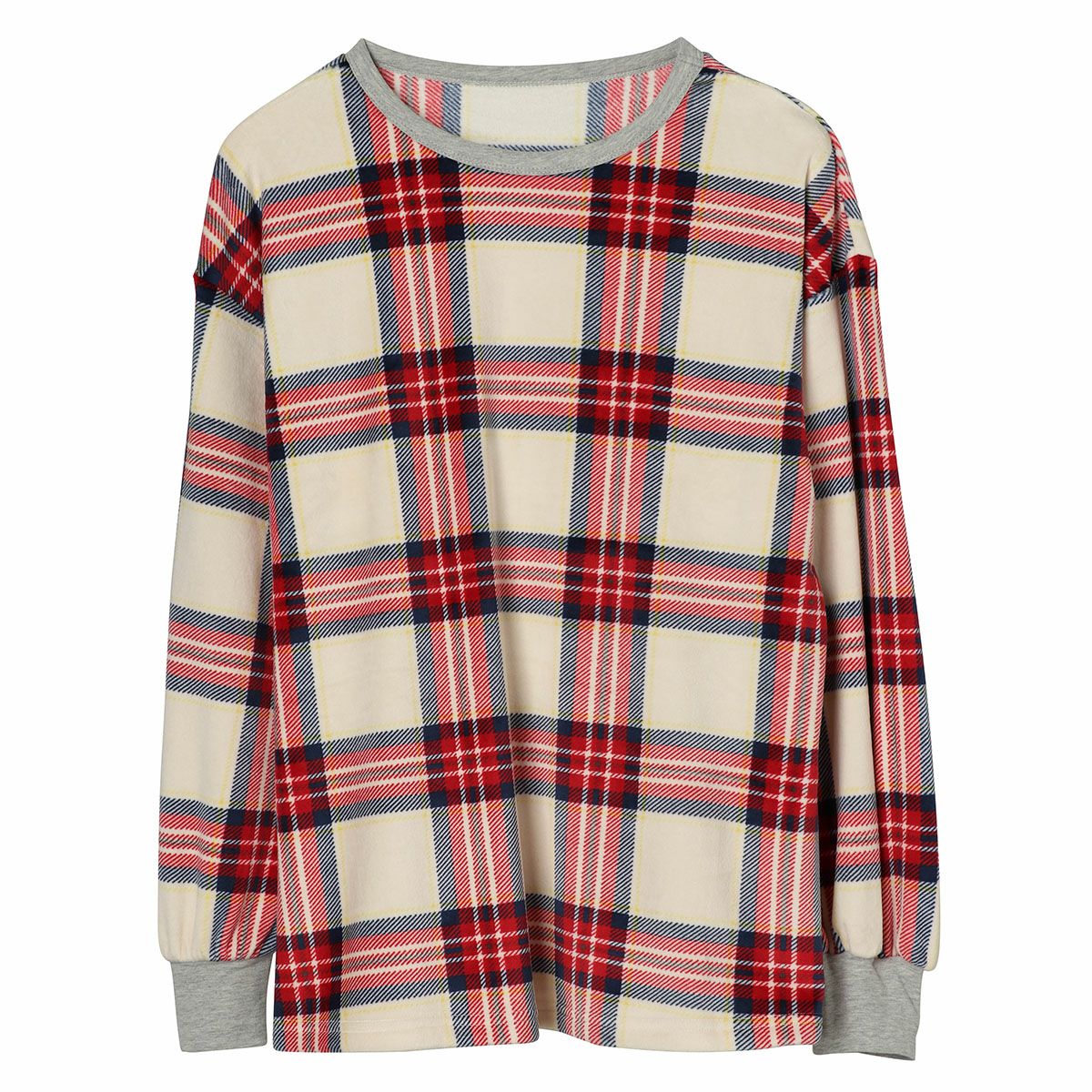 表面・肌側どちらも滑らかなタッチであること、縦横共に伸びのよい伸縮性が特徴。生産難易度が高い素材のため、表現出来る柄にも制限がありますが、今年はタータンチェック柄と無地の2シリーズが展開しています。メンズも2シリーズで展開。キッズは明るいアイボリーのチェック柄で上下セットのあったかパジャマを作りました。