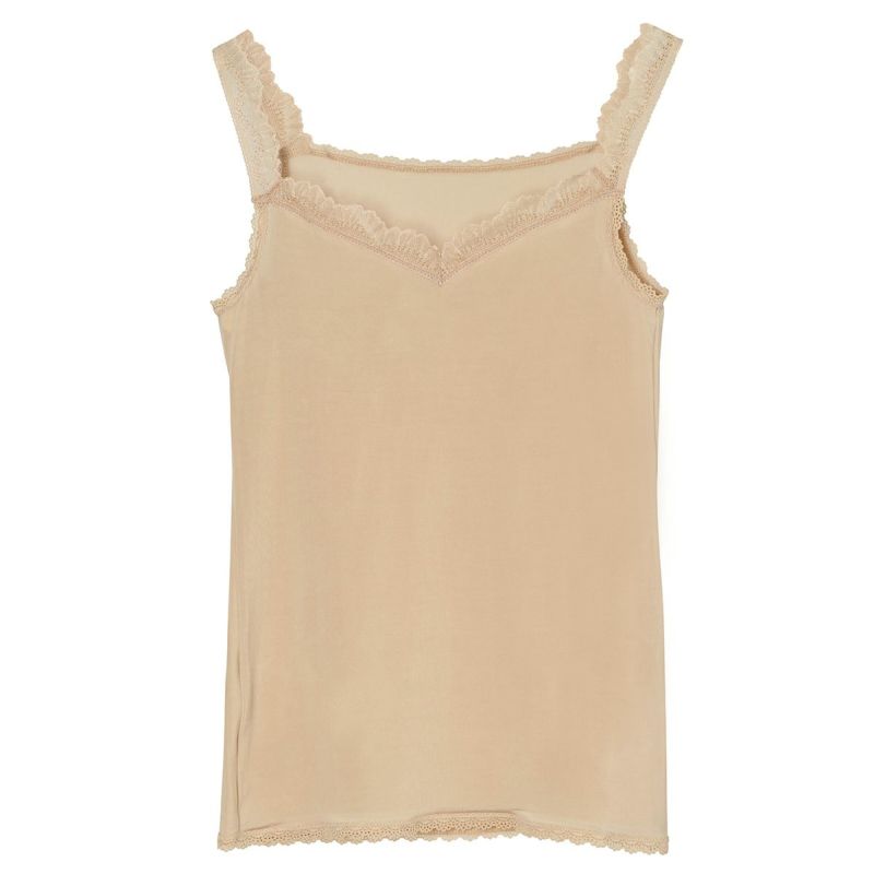 販売部N「寝るときにカップ付キャミソールをつけているんですが、寝るときもサラッとした肌当たりで快適です。夏はほぼほぼベンベルグで生活しています。透けが気にならない時もロングフレアパンツは履いていて、汗よけにもなるし、座った時のもも・膝裏などに汗をかいてもすぐ乾くので助かります。お洗濯しても乾きが早いので、洗っては着てヘビロテ中です!」