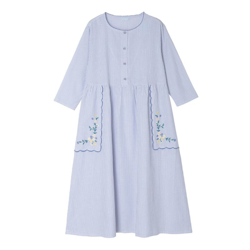 25ストライプエンブ8分袖ナイティ¥ 20,900