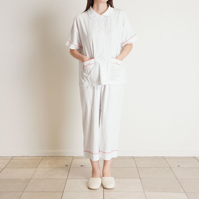 25ストライプエンブ5分袖パジャマ¥ 15,840