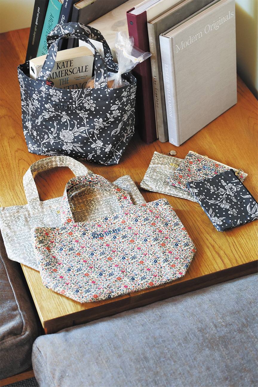 リバティ生地にラミネート加工を施した「LIBERTY プリントG」からは、普段使いにうれしいポーチとミニトートバッグが。