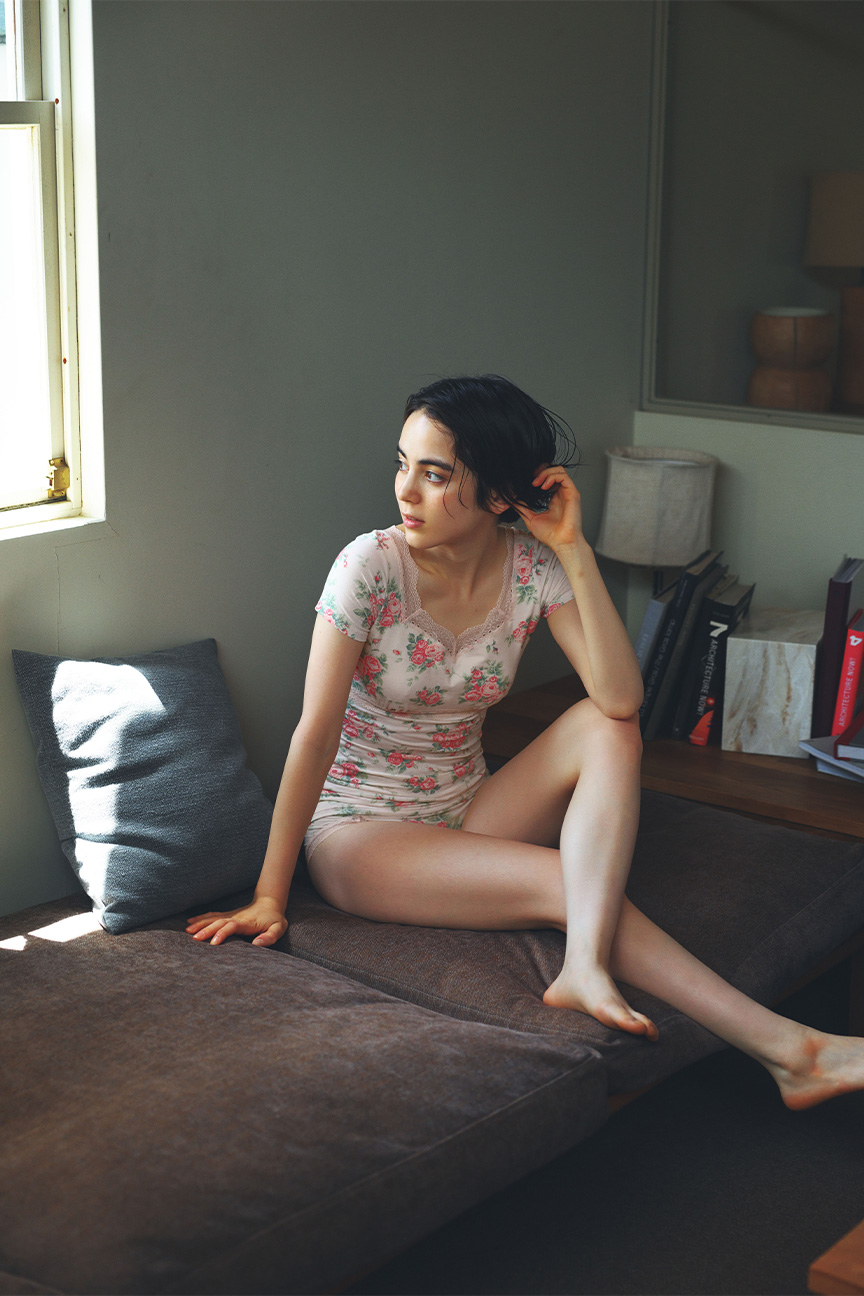 糸の密度をゆったりと編み上げることで、空気を含んだ軽やかな風合いに仕上げたインナーシリーズは、ふんわりと包み込むような肌触りで、季節を問わず身にまといたくなる。カラーは、淡くやわらかなピンクと、杢グレーにローズを重ねたシックなブルーで展開。