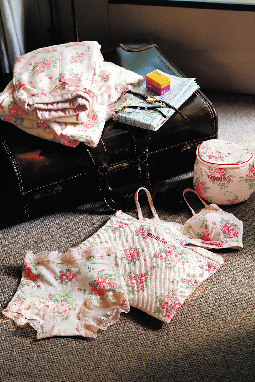 上品なローズブーケ柄でそろえたインナーやナイトウェア、ぬくもりを感じる裏シャギーのルームウェア、そして旅支度にも便利なランドリーネット。すべてが日常でも旅先でも心地よく過ごすためのパートナー。