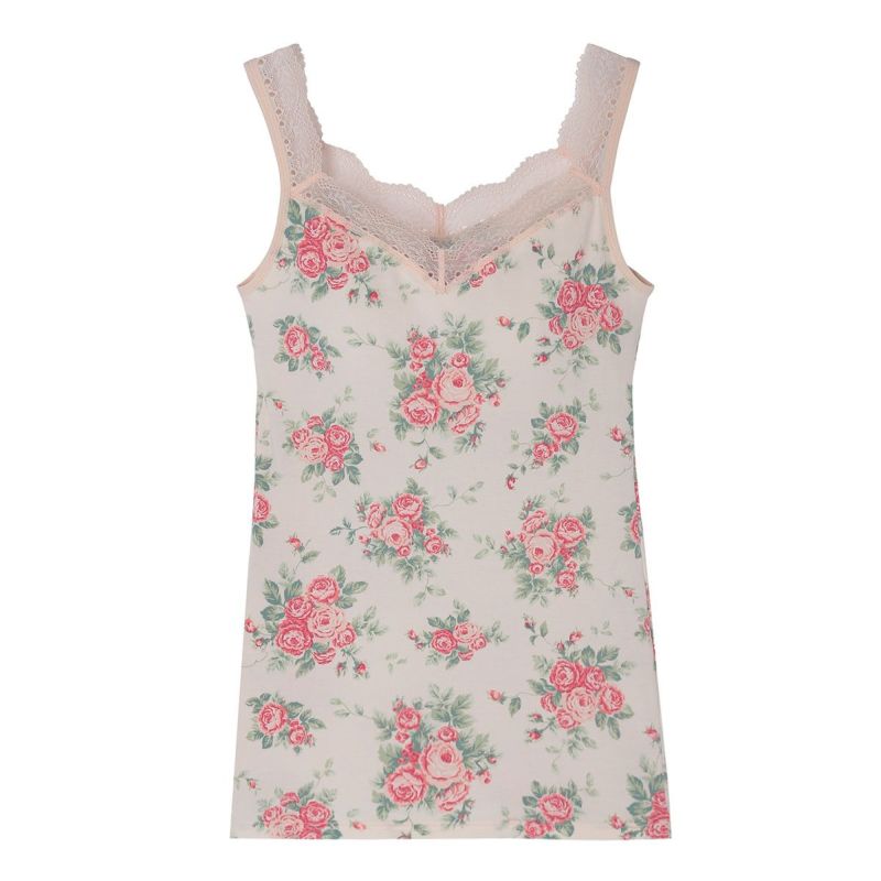 秋冬にリクエストの多いカップ付半袖インナーの展開も。半袖インナー+ブラの1枚2役でストレスフリーな着心地なので、旅のお供にもおすすめ。キャミソールはデコルテを美しく見せるVラインが印象的。アウターからのぞかせてもきっと可愛いはず♡