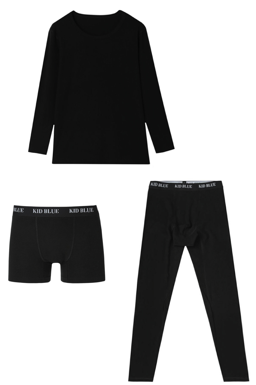 長袖インナーは、部屋着としても活躍する一枚。ボクサーパンツとロングボクサーパンツは、ウエストのブランドロゴがさりげないアクセント。