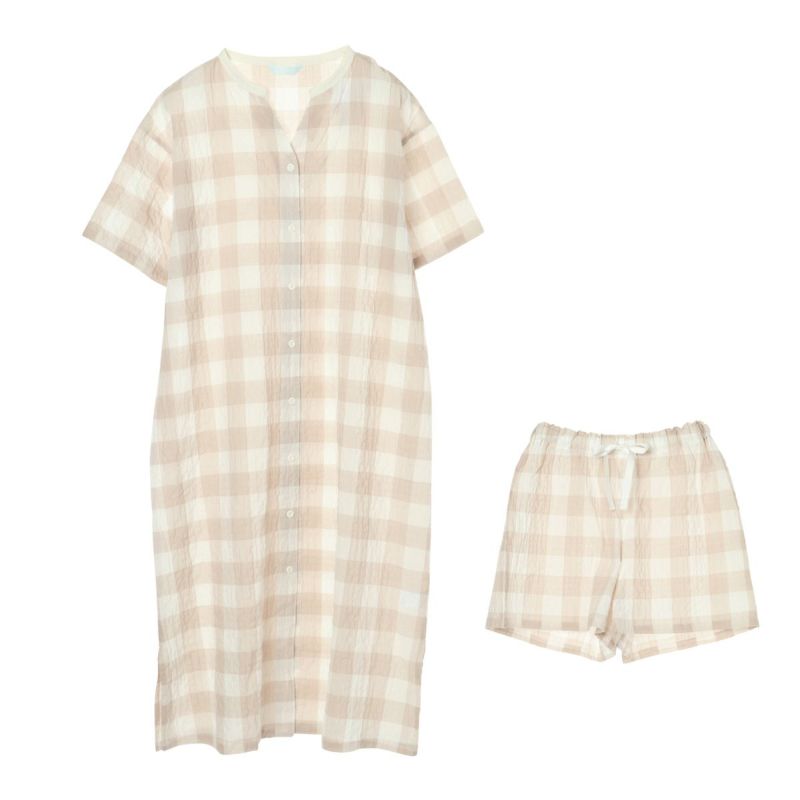 ギンガムチェックが印象的なナイトウェアは4月発売予定。凹凸感のある素材は肌離れがよく、気温があがっていくこれからの季節におすすめのシリーズです。