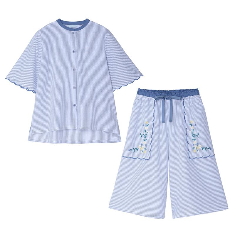 25ストライプエンブ[5分袖パジャマ]