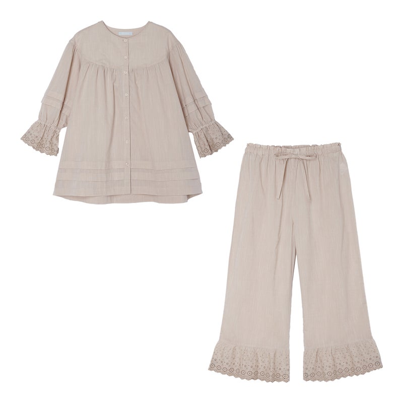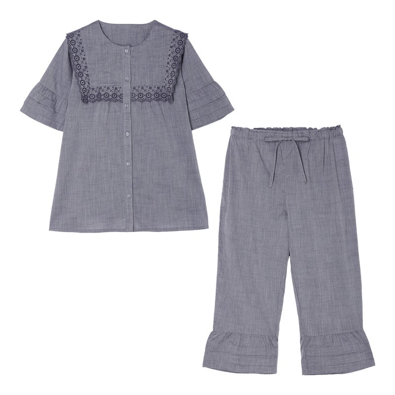 リップルチェックフラワー天竺[7分袖パジャマ]