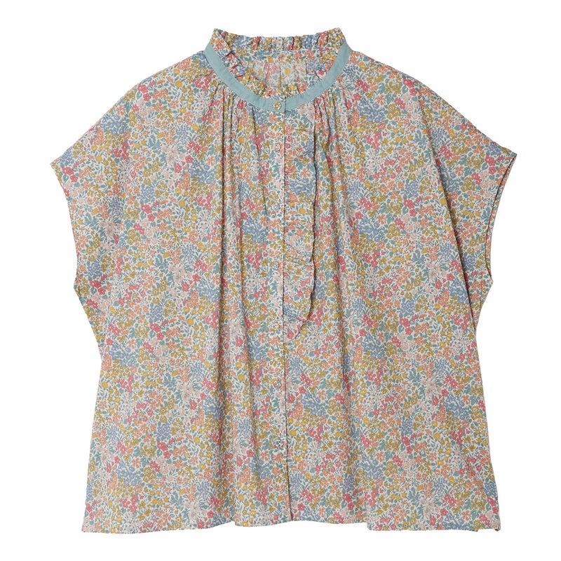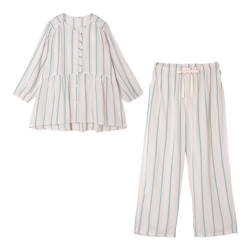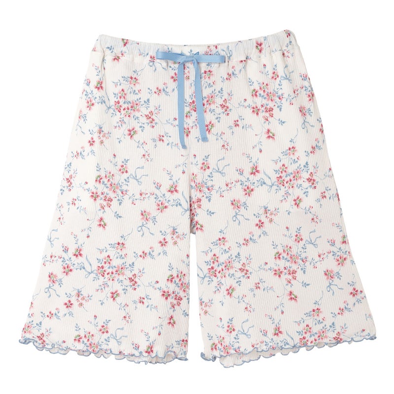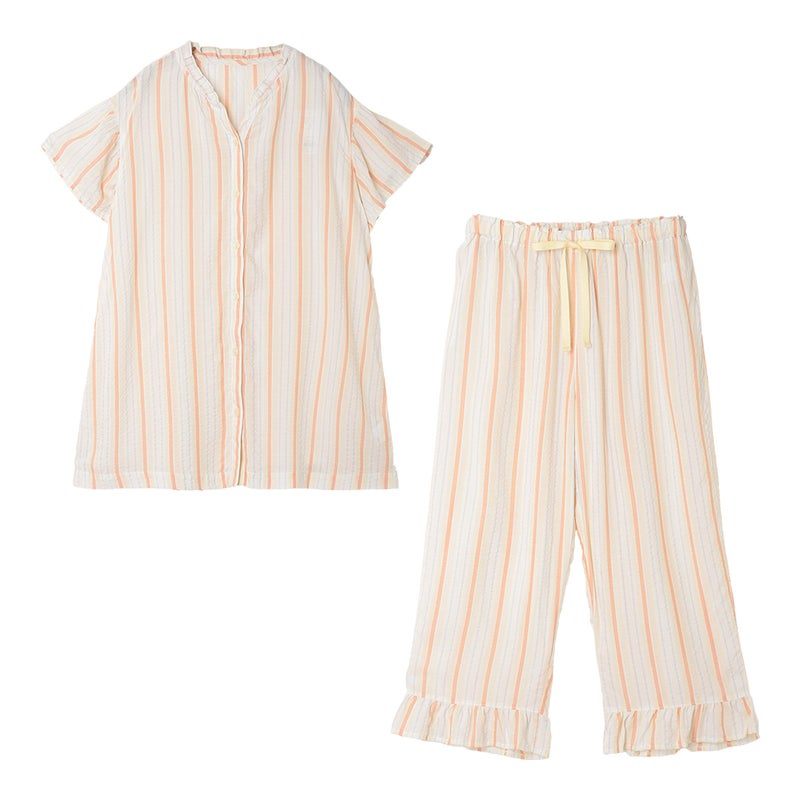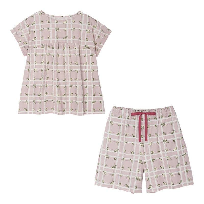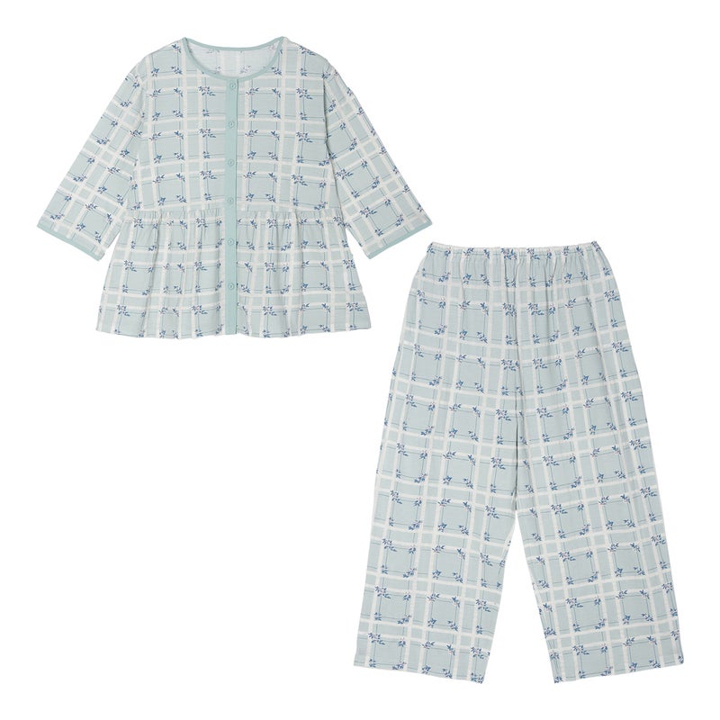 リップルチェックフラワー天竺[7分袖パジャマ]