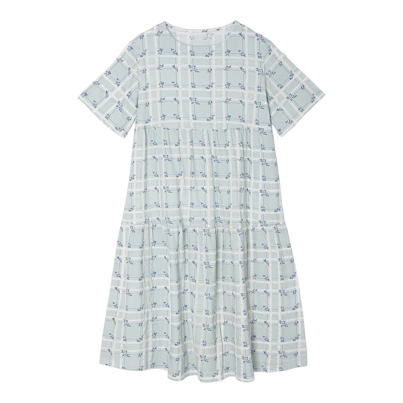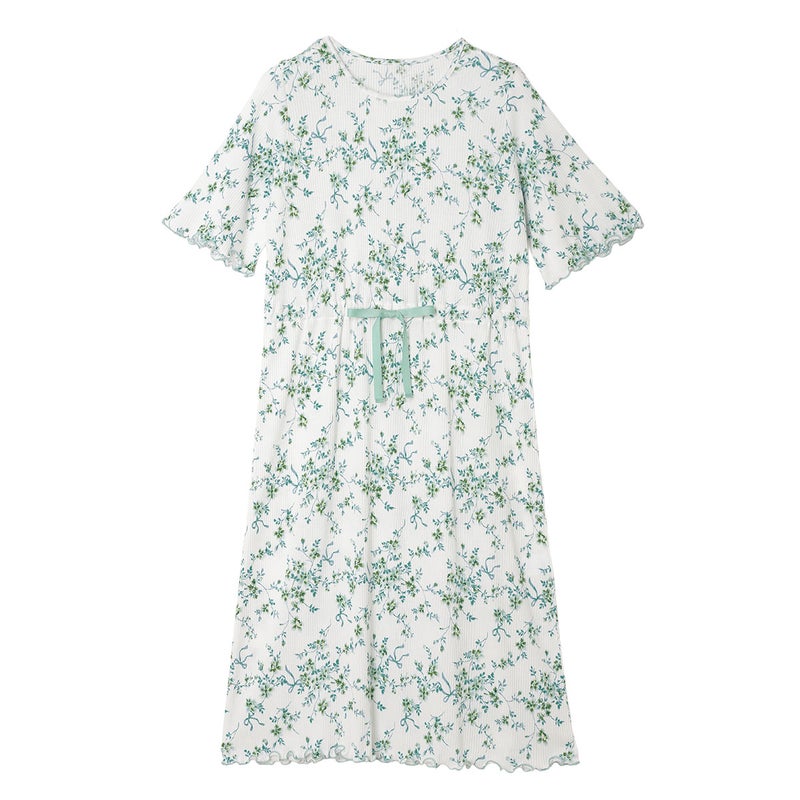 リップルチェックフラワー天竺[5分袖ナイティ]