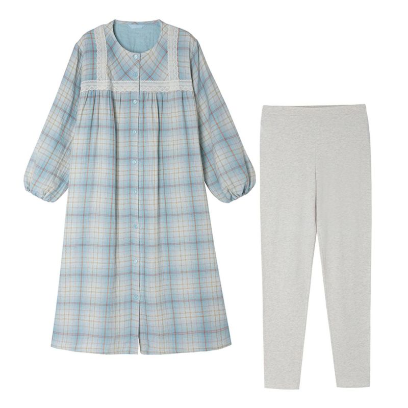 トリプルガーゼオンブレーチェック[長袖ナイティ]